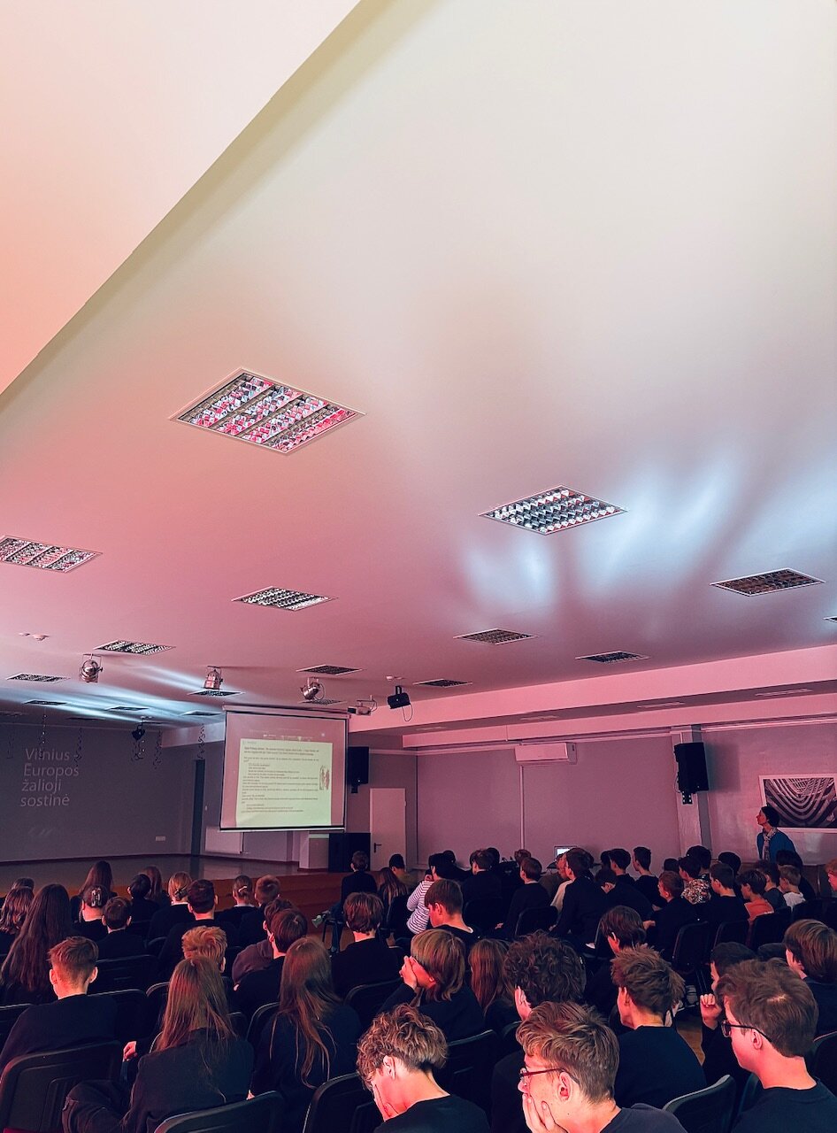 Mokykloje apjungėme dvi svarbias iniciatyvas - pradėjome bendradarbiavimą su šiais metais vykdomo tarptautinio Nordplus Junior projekto partnerėmis, dvejomis Latvijos mokyklomis, bei dalyvaudami nuotolinėje konferencijoje paminėjome Europos kalbų dieną!