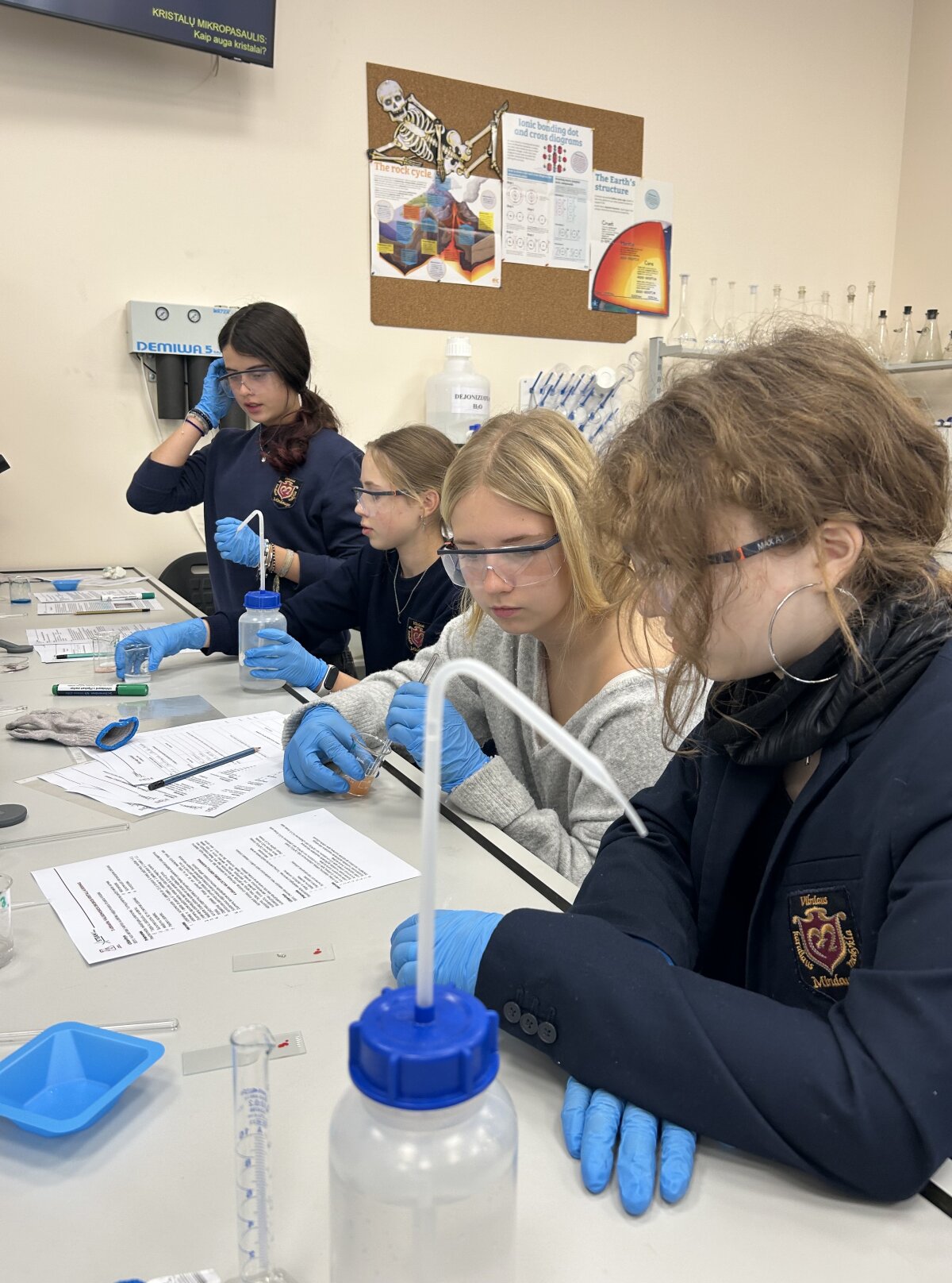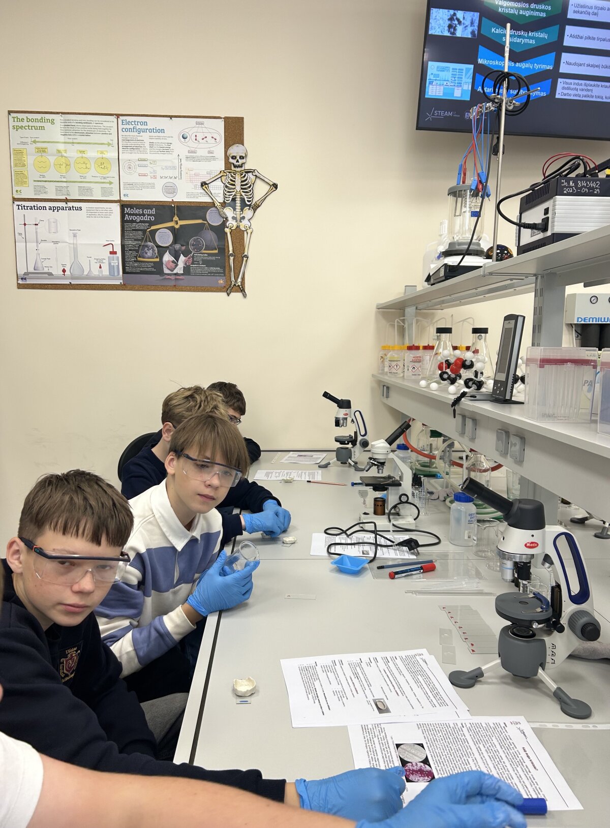Spalio 1d. 8b klasės mokinių grupė dalyvavo VU STEAM edukacijoje ,,Kaip auga kristalai?”. Vaikai susipažino su kristalinių medžiagų struktūra, skirtingais būdais iš cheminių medžiagų užaugino mikrokristalus ir juos apžiūrėjo mikroskopu, tyrinėjo kristalų augimo greitį bei augalų ląstelėse susidarančius neorganinių medžiagų kristalus. Mokiniai puikiai darbavosi universiteto laboratorijoje, taikė mokykloje įgytas praktines žinias bei tobulino darbo poroje įgūdžius!