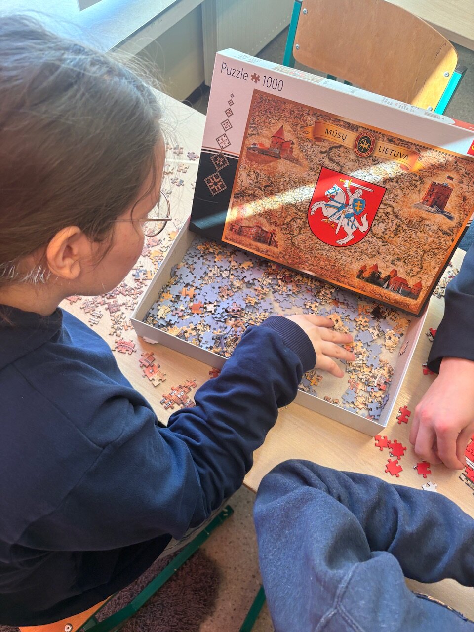 Dėlionės - ne tik smagus, bet ir susikaupimą lavinantis laisvalaikio praleidimas. Džiaugiamės, kad tiek mūsų mažieji, tiek vyresni mokiniai įniko į šį kruopštų procesą!