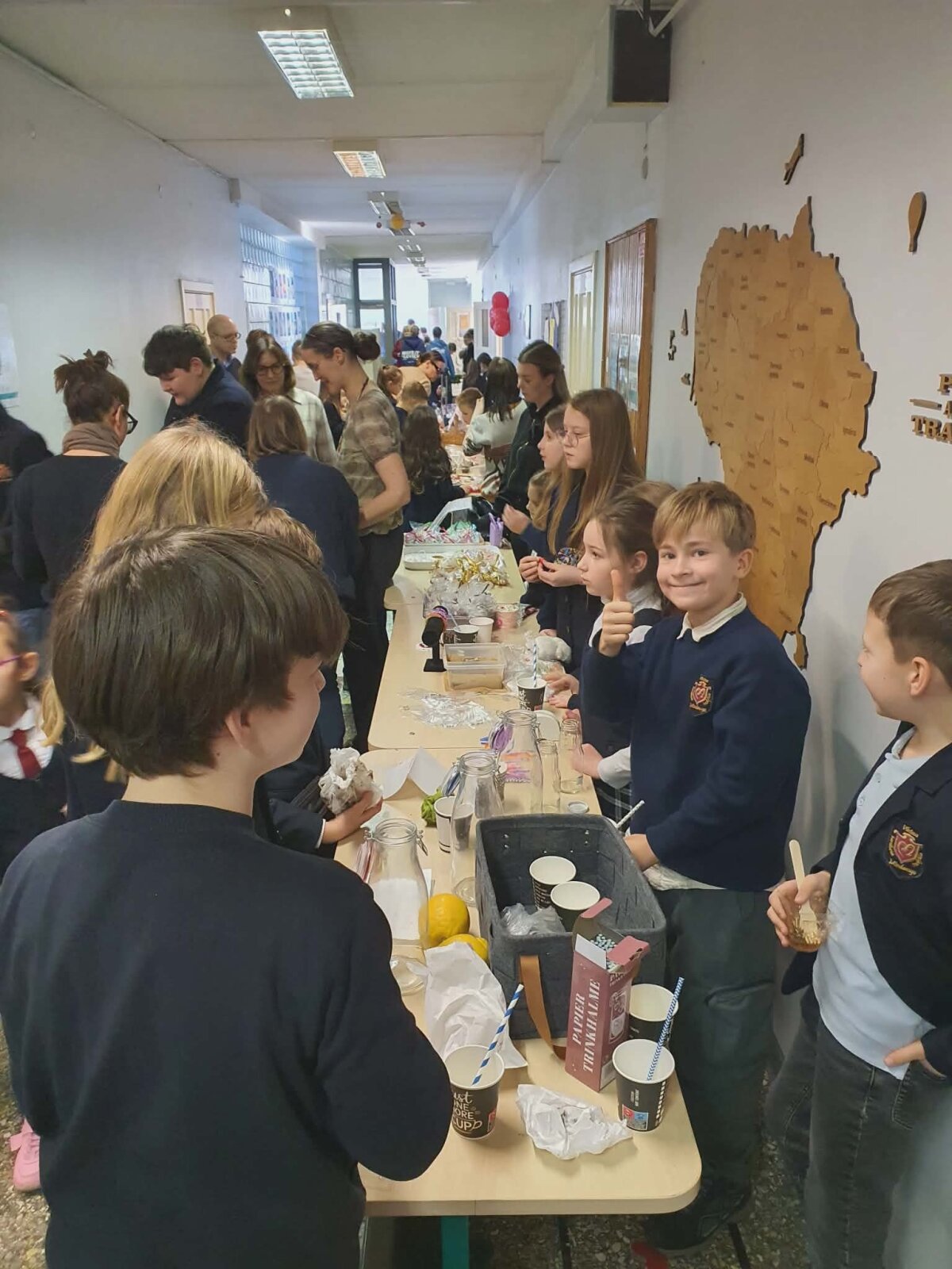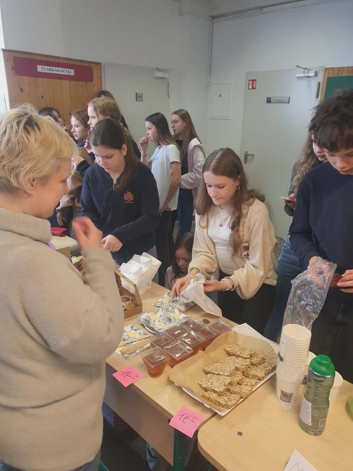 Mokinių ir mokytojų rankomis pagaminti dirbiniai, gardūs kepiniai ir gera nuotaika užpildė visą mokyklą. Mugėje netrūko spalvų, kūrybiškumo ir smagaus šurmulio – kiekvienas galėjo rasti ką nors skanaus ar gražaus.