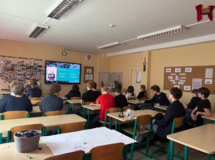 Savaitės veiklas užbaigė 8a klasės mokiniai, kurie penktadienį dalyvavo SEB organizuotoje nacionalinėje nuotolinėje pamokoje „Pinigai seniai nebėra tabu. Pakalbėkime apie tai“.