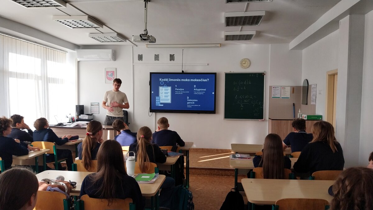 Taip pat vyko trumpalaikis projektinis darbas „Mokesčiai Lietuvoje“, kurį 6a klasės mokiniams pristatė 8a klasės mokinys Tautvilas Sakalauskas.